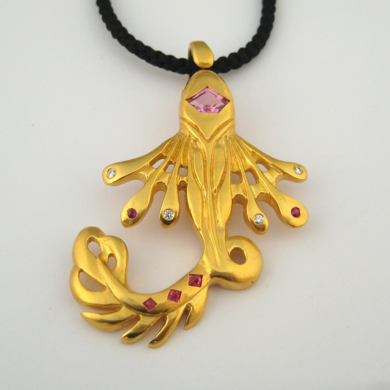 From land, sea or sky our pendants are bold statements. Whether a flower in bud, in full bloom or somewhere in between, a denizen of the deep or a bird in flight they are never shy. You can wear them with your own chain of any length or with a silk or leather cord with custom made closures that reflect the piece.